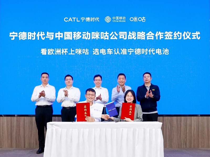 6月7日,寧德時代與中國移動咪咕公司在福建寧德舉行戰略合作簽約儀式。寧德時代正式成為咪咕歐洲頂級足球賽事轉播首席合作伙伴,攜手咪咕公司共贏2024超級體育大年,圍繞國內外頂級體育賽事展開全面合作。